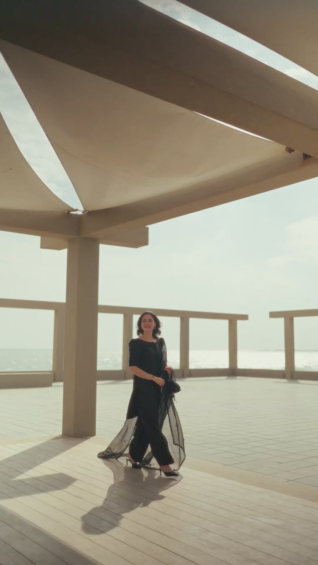 Evoking modern glam, Temirah makes a sublime statement. Cut from opulent black silk, the embellished shirt and shalwar are delicately adorned with cutdana and pearl adornments. Paired with an embellished organza dupatta, this ensemble is sure to put you in the spotlight at every occasion.